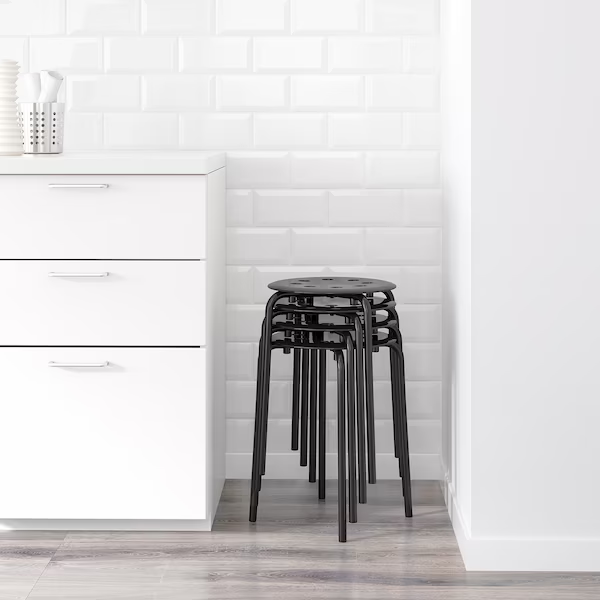 The stool can be stacked, so you can keep several on hand and store them on the same space as one.