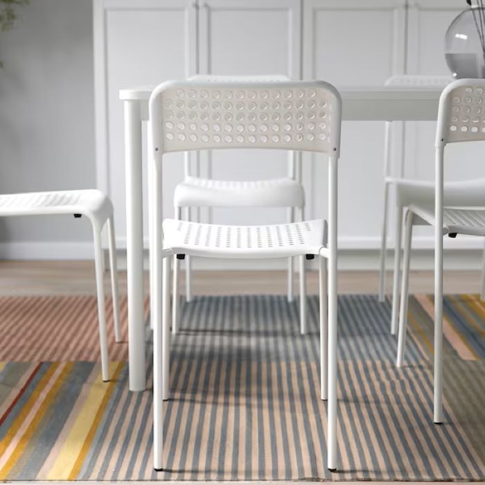 To prevent surface scratches and the sound of chair legs scraping on the floor, complete with FIXA self-adhesive floor protectors, sold separately.